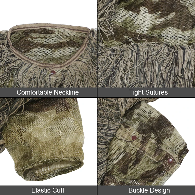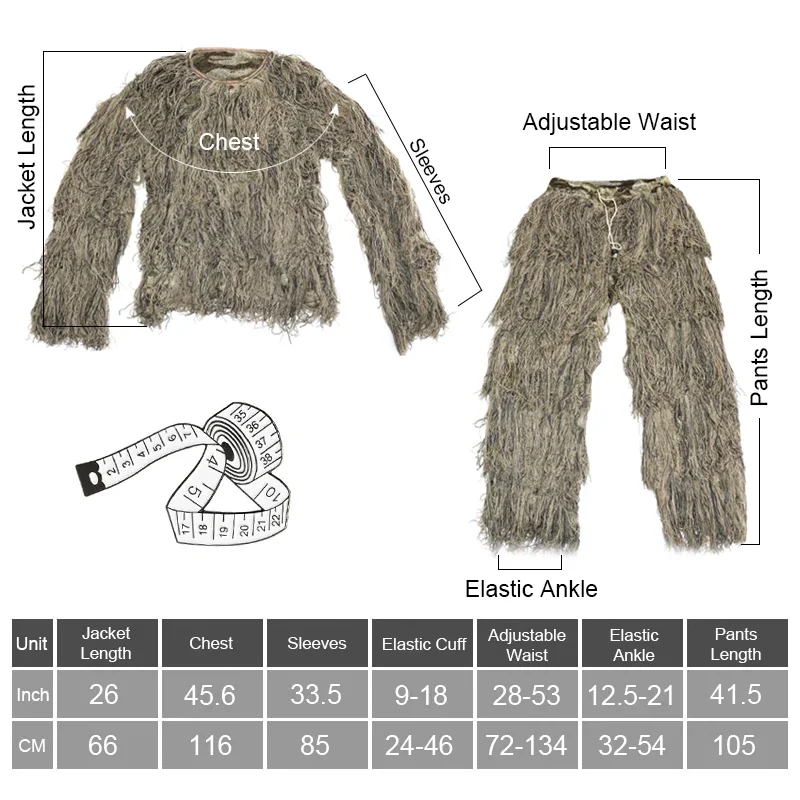 3D Ghillie Suits Ghillie Yowie Snipe Jacket Pants Head Cover Rifle Cover Shooting Hunting Clothes Desert Camouflage Men Hunting Suits Cosplay PUBG Game Miltary Hunting Apparel