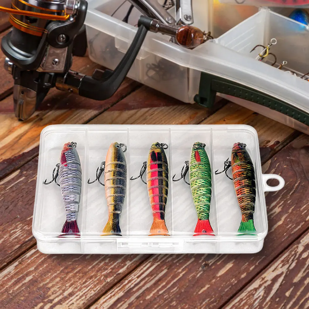 MOJOYCE 5 Pieces Multi Jointed Swimbaits Treble Hooks Fishing Lures