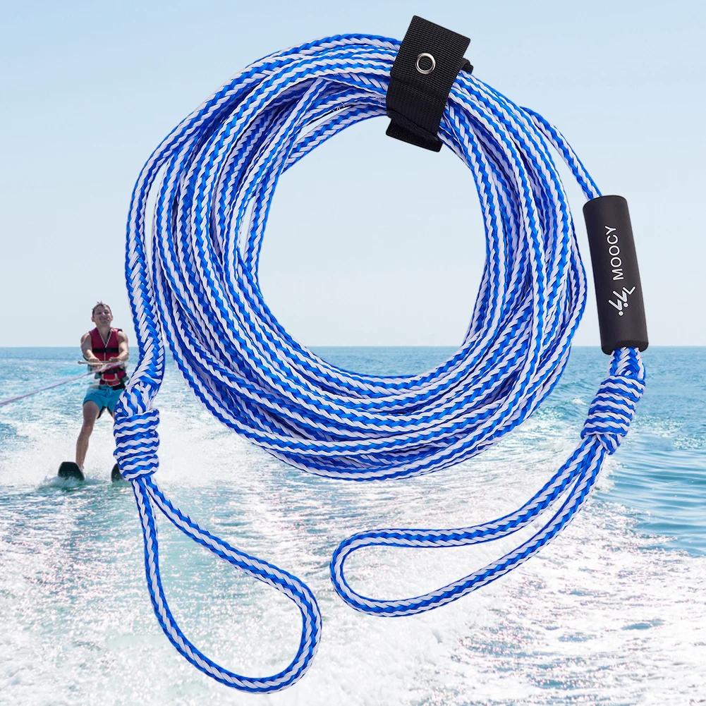 - High-Strength Construction: 16-strand hollow woven PE rope with annulus at each end, providing a robust breaking strength of 3350 pounds for reliable towing of tubes and water sports gear.