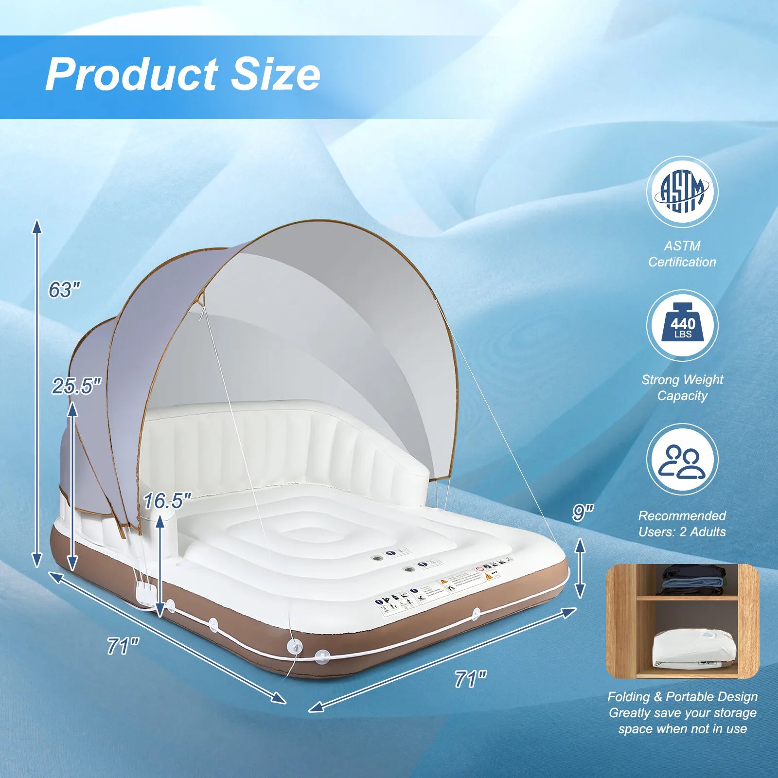 Escape to poolside luxury with the Costway Canopy Island Inflatable Pool Float Lounge Raft—your portable retreat for sun-filled days with friends.