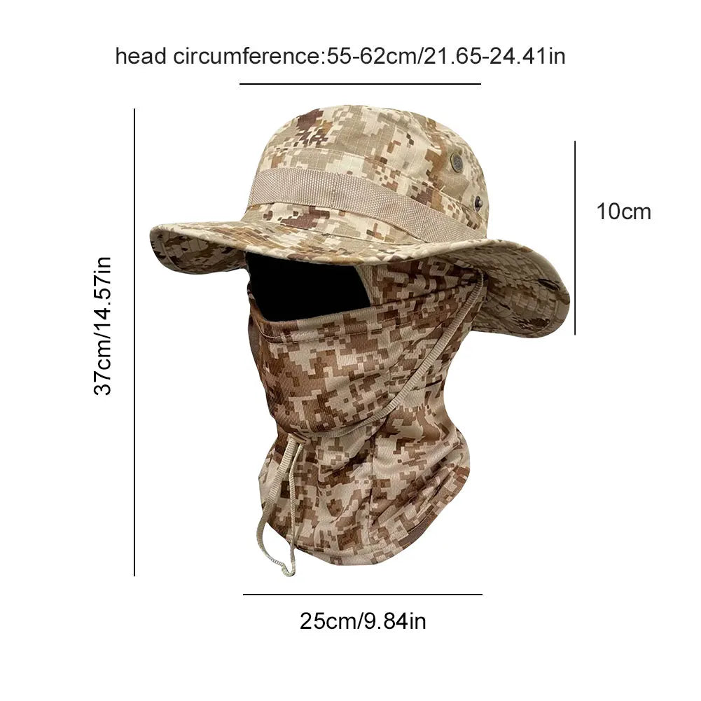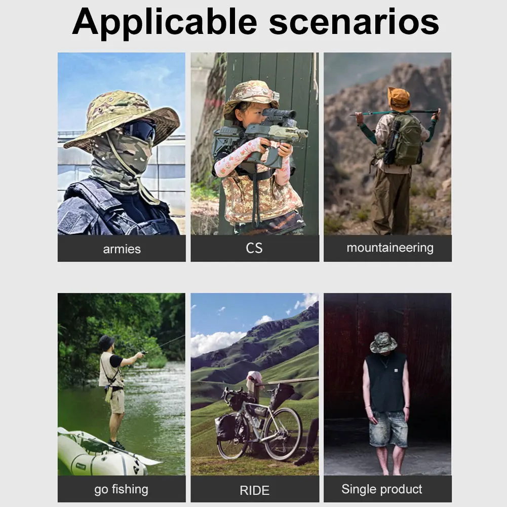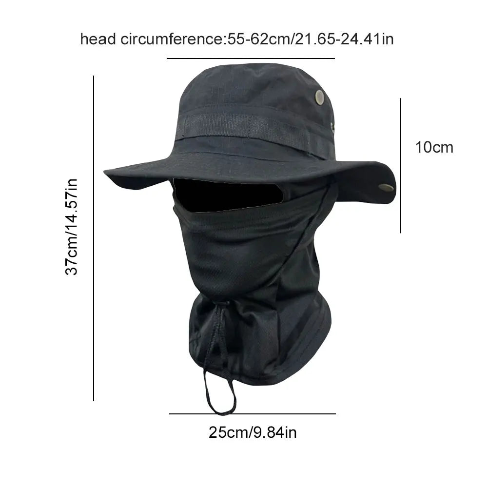 ![]() Boonie Hat Balaclava Full Face Mask Set Wide Brim Fishing Hat Sun Protection Fishing Cap for Men Women Fishing Hiking Camping Features: 1.Outdoor Performance with Style: This boonie hat combines functionality and fashion, ensuring you stay protected from the elements while looking great. 2.Face Protection Against Elements: The fishing hat offers effective protection for your face against wind and sand, perfect for any outdoor adventures. 3.Polyester Fabric for Sweat Management: Made from polyester, this sun hat wicks away moisture and sweat, keeping you dry and comfortable throughout your outdoor activities. 4.Breathable Mesh Design: With mesh eyelets, this bucket hat allows heat to dissipate, providing ventilation and comfort in hot weather conditions. 5.Sturdy Stitching for Comfort: Fine stitching ensures durability and comfort, making the fishing cap a reliable choice for all-day wear. Specification: Origin: Mainland China Size: Bucket hat head circumference 55-62cm/21.65-24.41inch Bucket hat brim length 7cm/2.76inch Neck 40x23cm 15.75x9.06inch Material: Polyester Note: ![]() 1 x Fishing Hat 1 x Balaclava ![]() [relateproductdetail/] |