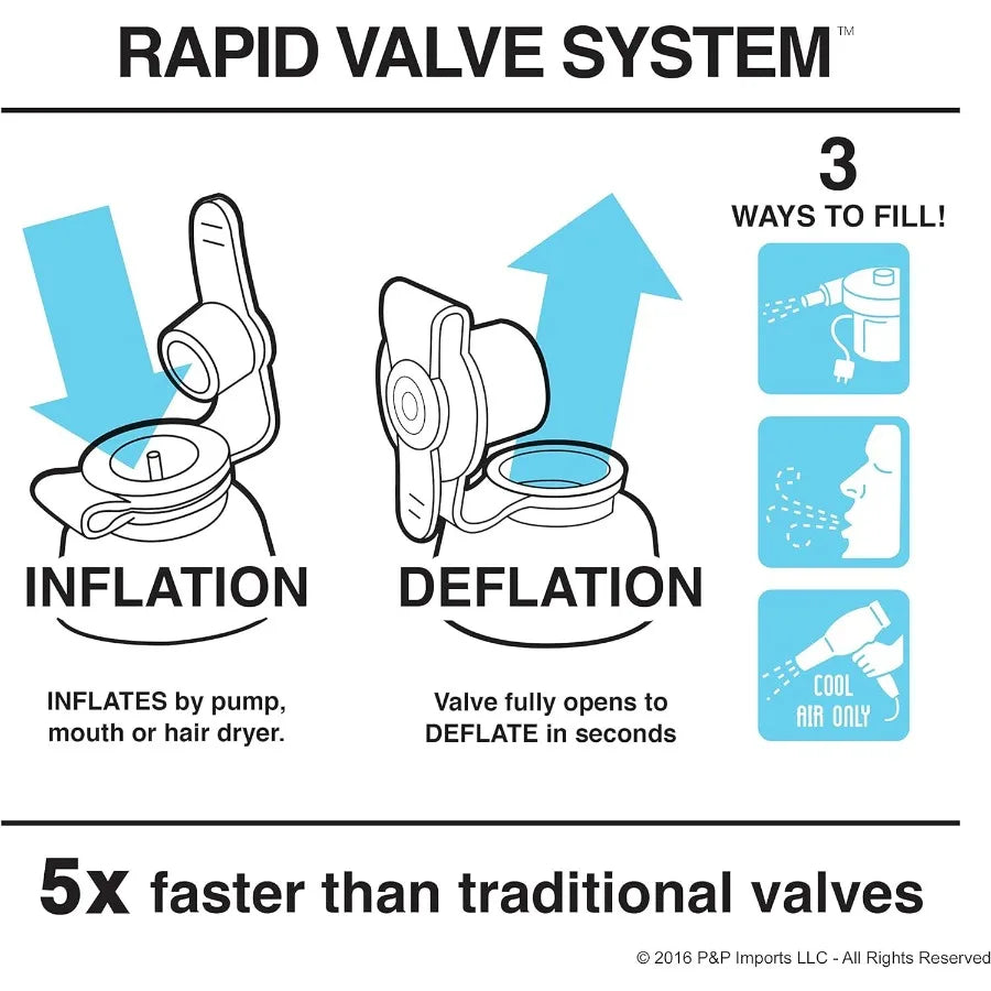 - Inflates quickly with a pump and deflates flat for compact storage, so you can pack it for travel with ease.