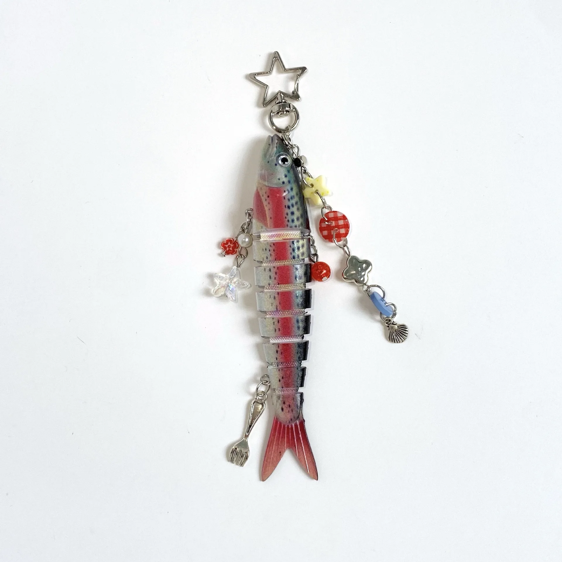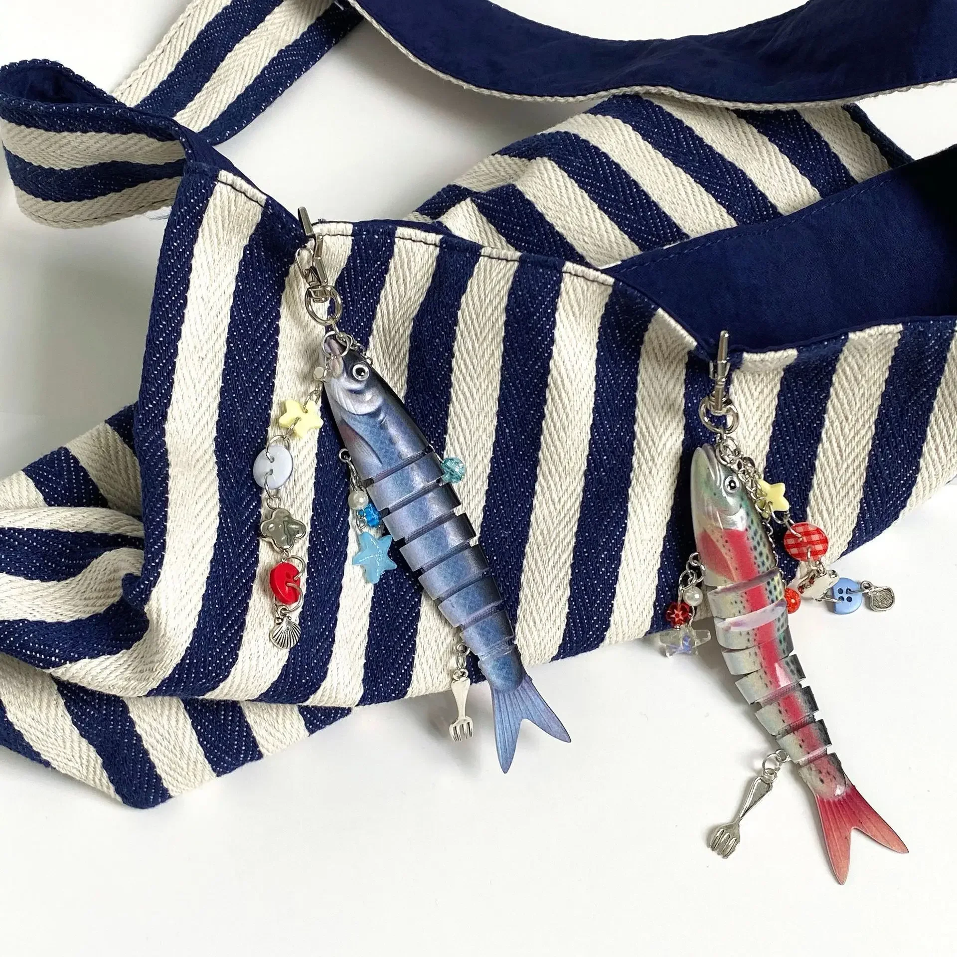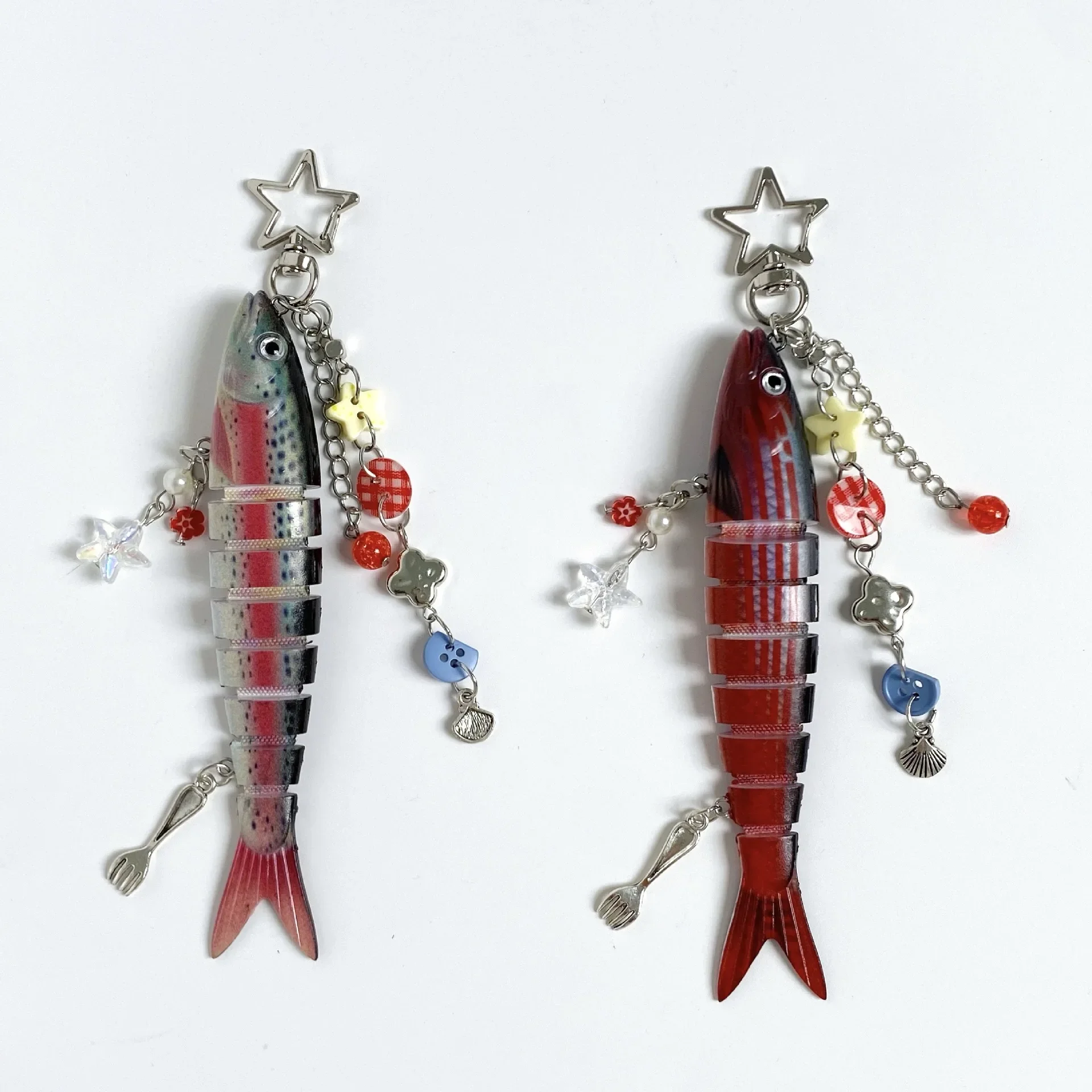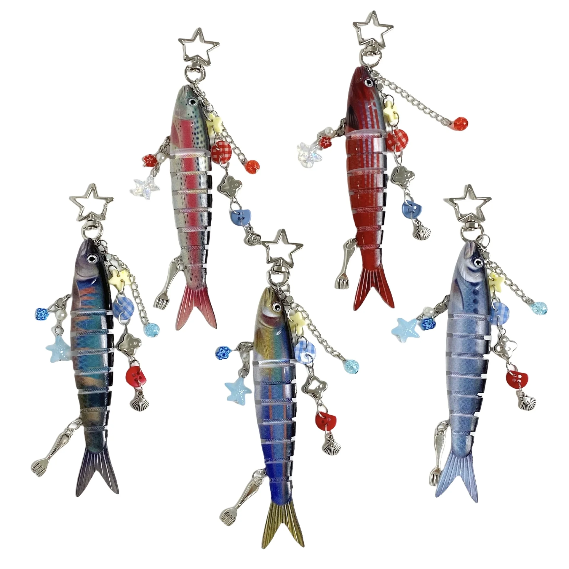 1. Unique biomimetic design: Adopting a biomimetic fish design, it realistically reproduces the shape of the fish, with multiple sections of the fish body that are lively and interesting. Paired with small ocean element pendants such as stars and shells, it is full of ocean charm and is a favorite of fishing enthusiasts.