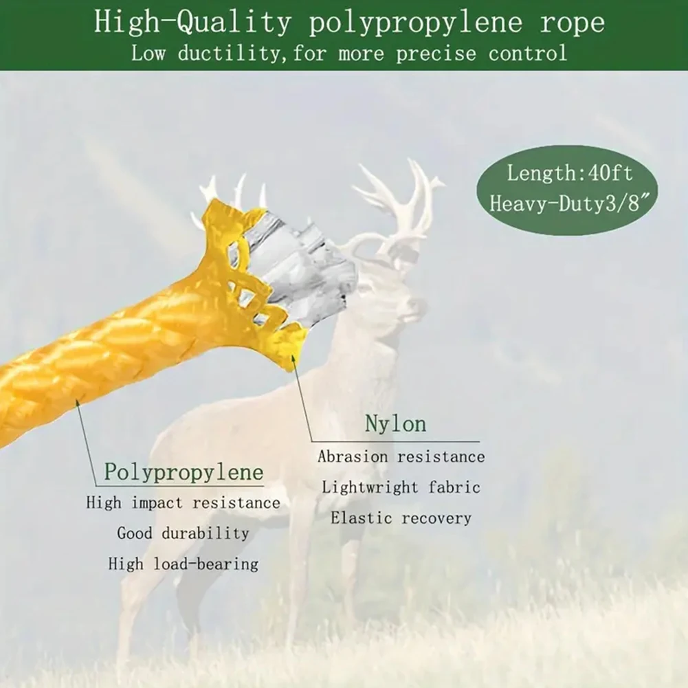 3. Effort-Saving Design: Our deer hanger features a 4:1 lift ratio, designed to save your energy while lifting heavy loads. The pulley system is made from metal materials, ensuring strength and reliability compared to plastic alternatives, while the locking mechanism provides a secure hold during your hunting activities.