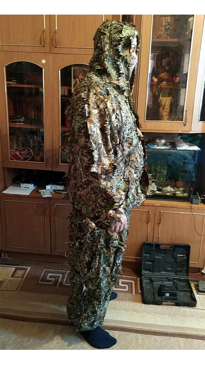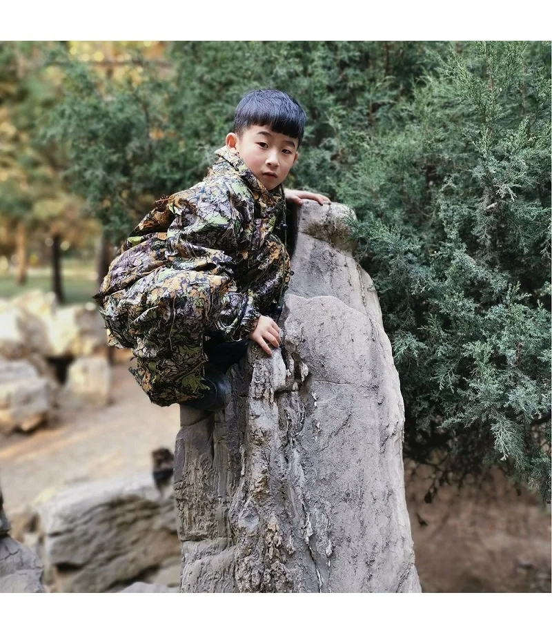 Men Women Kids Outdoor Ghillie Suit Camouflage Clothes Jungle Suit CS Training Leaves Clothing Hunting Suit Pants Hooded Jacket