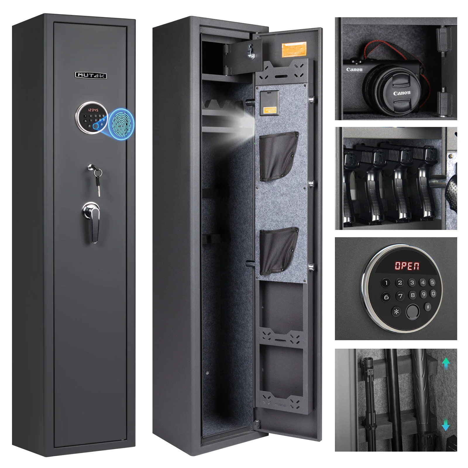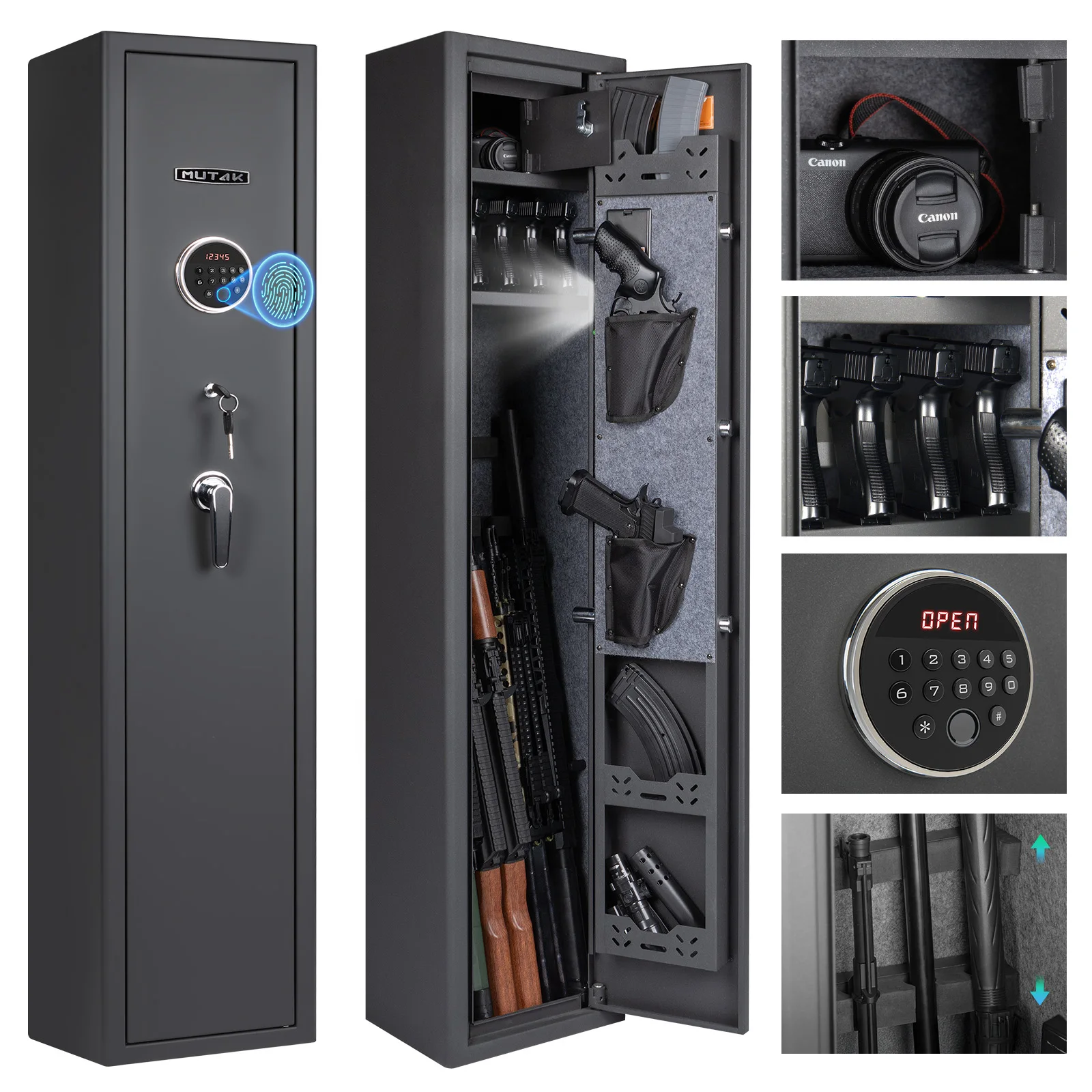 Mutak 3-8 Rifles Gun Safe for Home Rifles Pistols,Biometric Gun Cabinet with Fingerprint/Keypad/Key,with Locker Removable Shelf