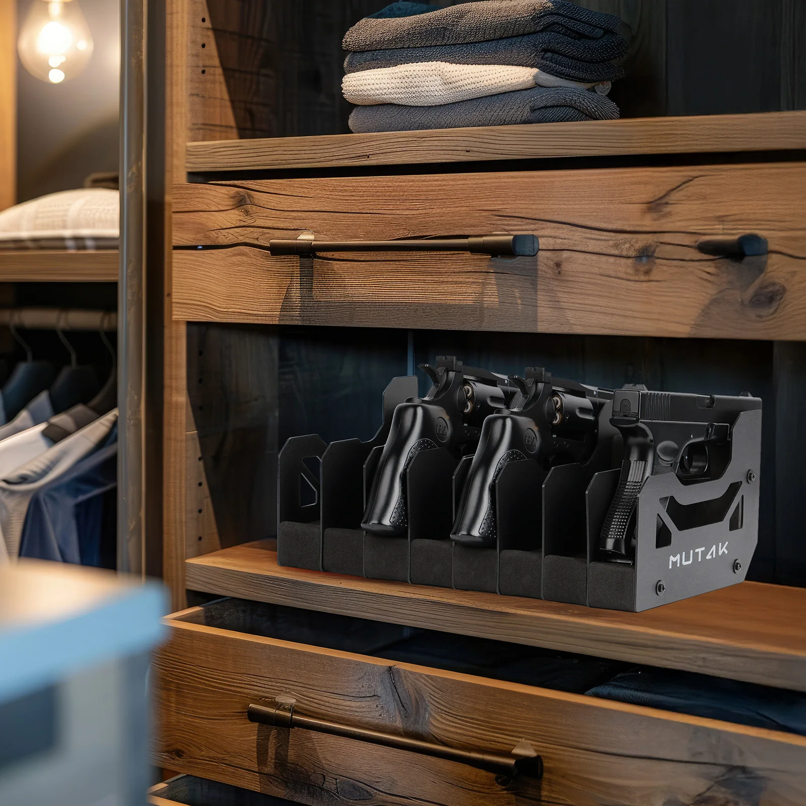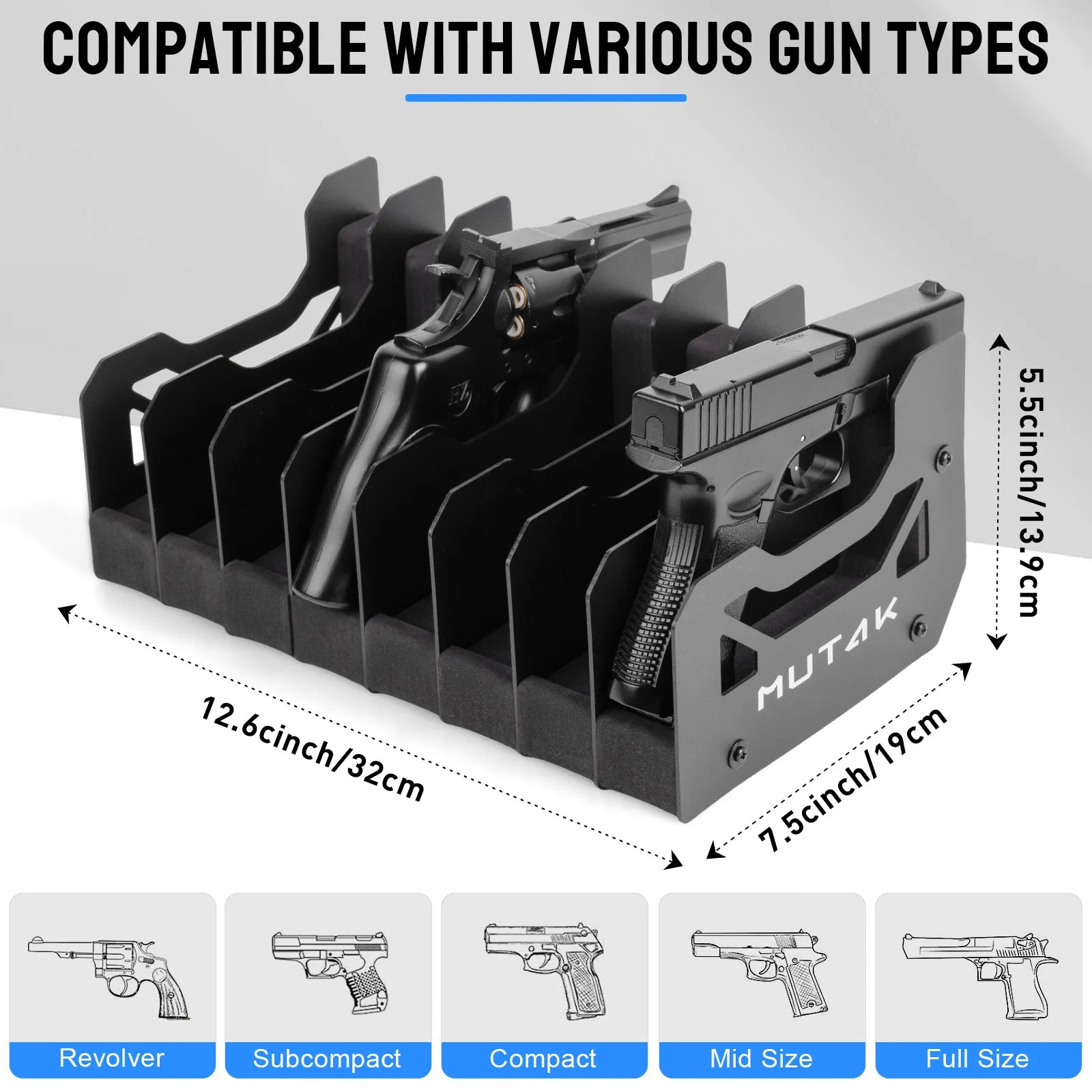 Mutak 8 Slots Pistol Rack for Gun Safe,Foam Handgun Rack with Anti-slip Magnetic Strip Revolver Pistols Holder Indoor Gun Rack