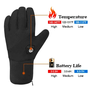 Three kinds of heating settings make it easy to adjust the temperature. Low-grade heating can last up to 6 hours (when the battery is fully charged). The high-capacity battery life of UL certified electronic gloves is longer and safer than the ordinary 3.7V battery on the market.