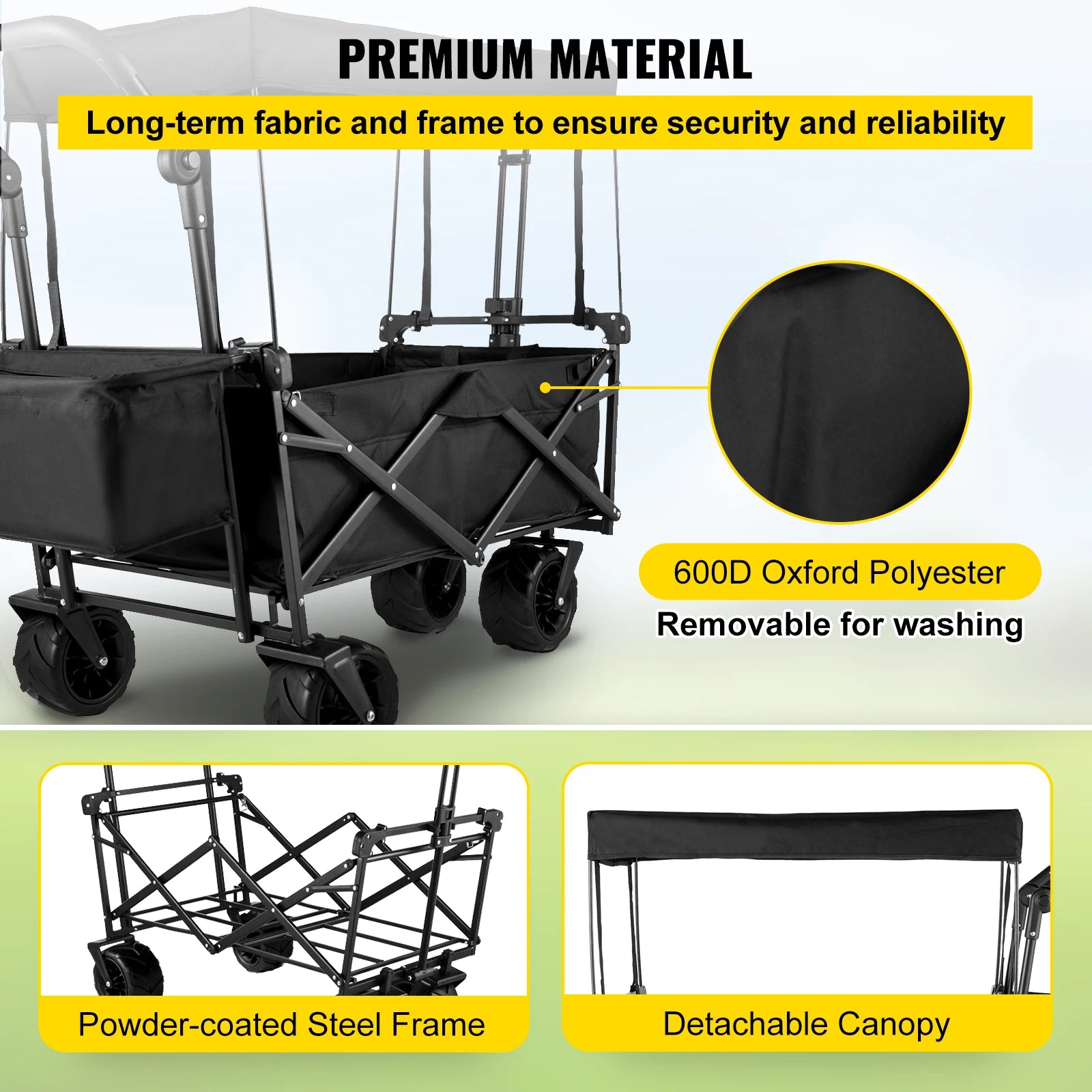 VEVOR Folding Wagon Cart Adjustable Handle Removable Canopy