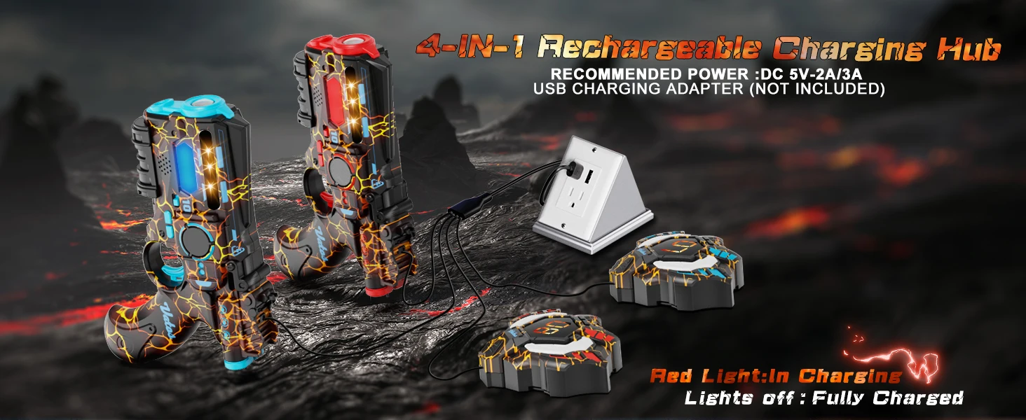 【Rechargeable & Hassle-Free Fun】 Say goodbye to constant battery changes! The rechargeable laser tag guns and vests come with a 4-in-1 charging cable, allowing you to charge all gear simultaneously. Each charge supports approximately 8 games, With a 131ft shooting range, ensuring hours of uninterrupted play. Perfect for outdoor family games or teenage group activities, this set keeps the fun going without any downtime