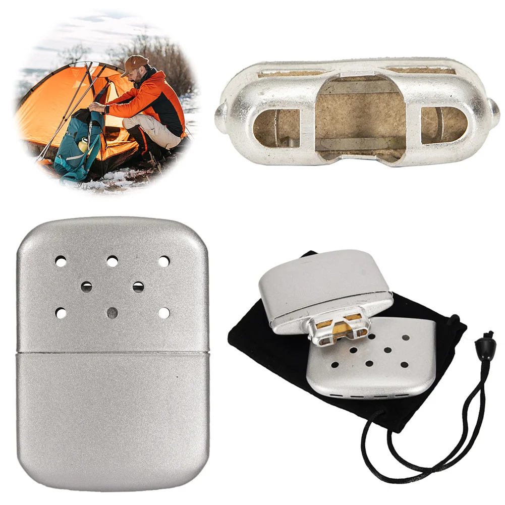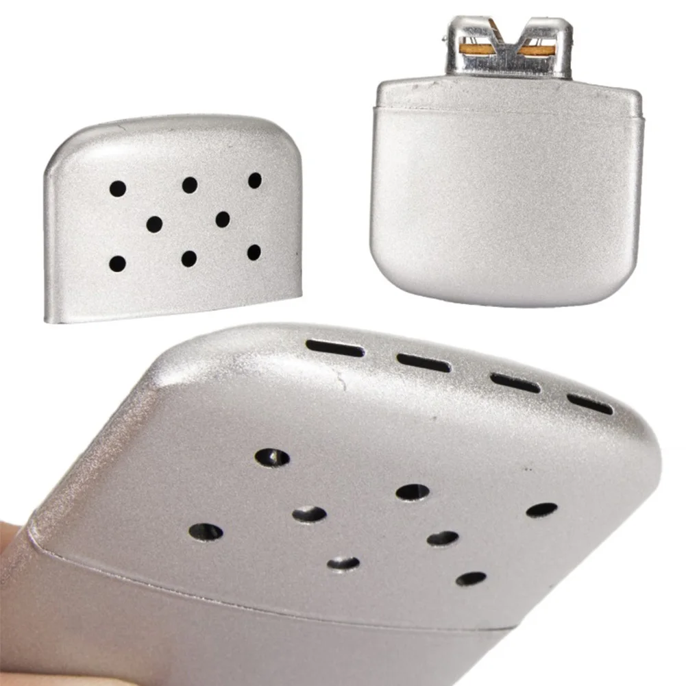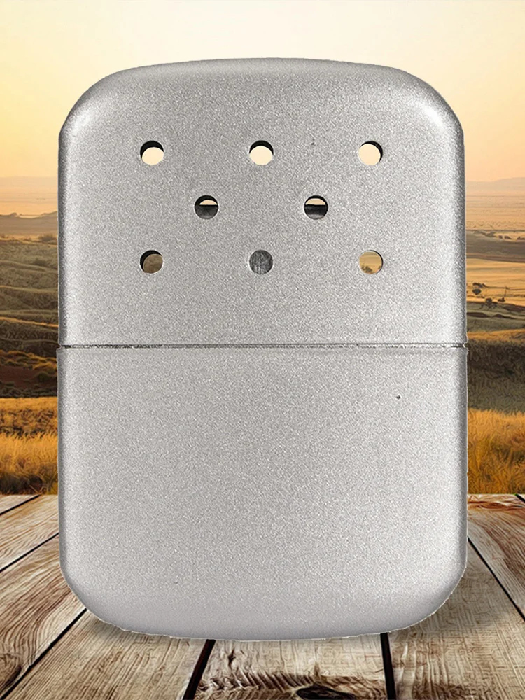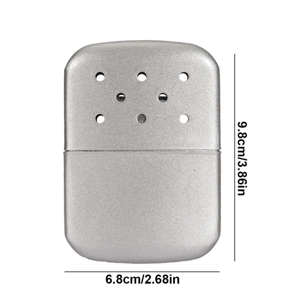 Zinc Alloy Portable Fuel Heater Reusable Fuel Hand Warmers Heater Small Handy Warmer Heater for Outdoor Hunting Camping Fishing Feature: 1. Long-Lasting Warmth: This hand warmer is designed to keep you warm all day with just a single fuel refill. It provides continuous heat, ensuring you remain comfortable and cozy in cold conditions without needing frequent refueling. Specification: Origin: Mainland China Size: 98x68mm/3.86x2.68inch Material: Zinc alloy Note: 1 x Hand Warmer